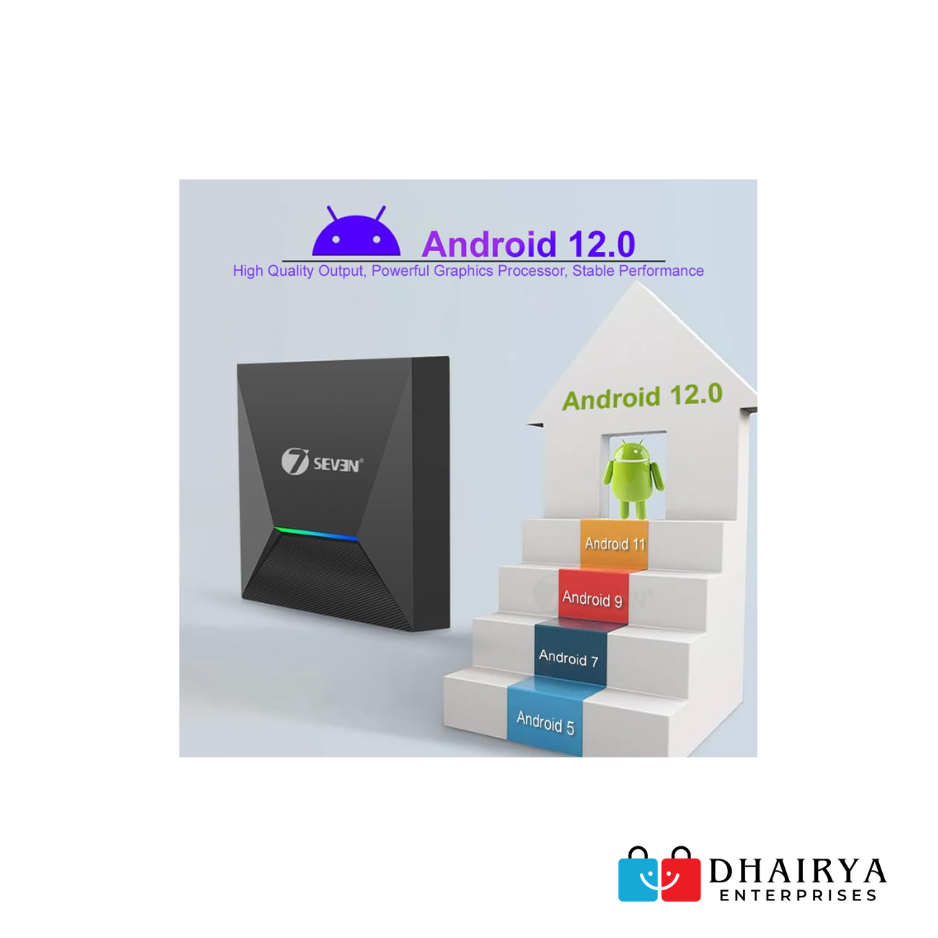 The 7SEVEN 4K Android TV Box brings cinematic quality and smart technology to your TV. Powered by Android OS, this TV Box lets you stream your favorite shows, movies, and videos in stunning 4K resolution. With support for popular apps like Netflix, YouTube, Prime Video, Disney+ Hotstar, and more, it transforms any compatible TV into a smart entertainment hub.